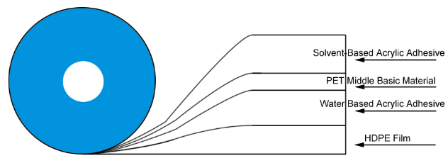 Пленка между акриловым клеевым слоем на водной основе и акриловым клеевым растворителем.